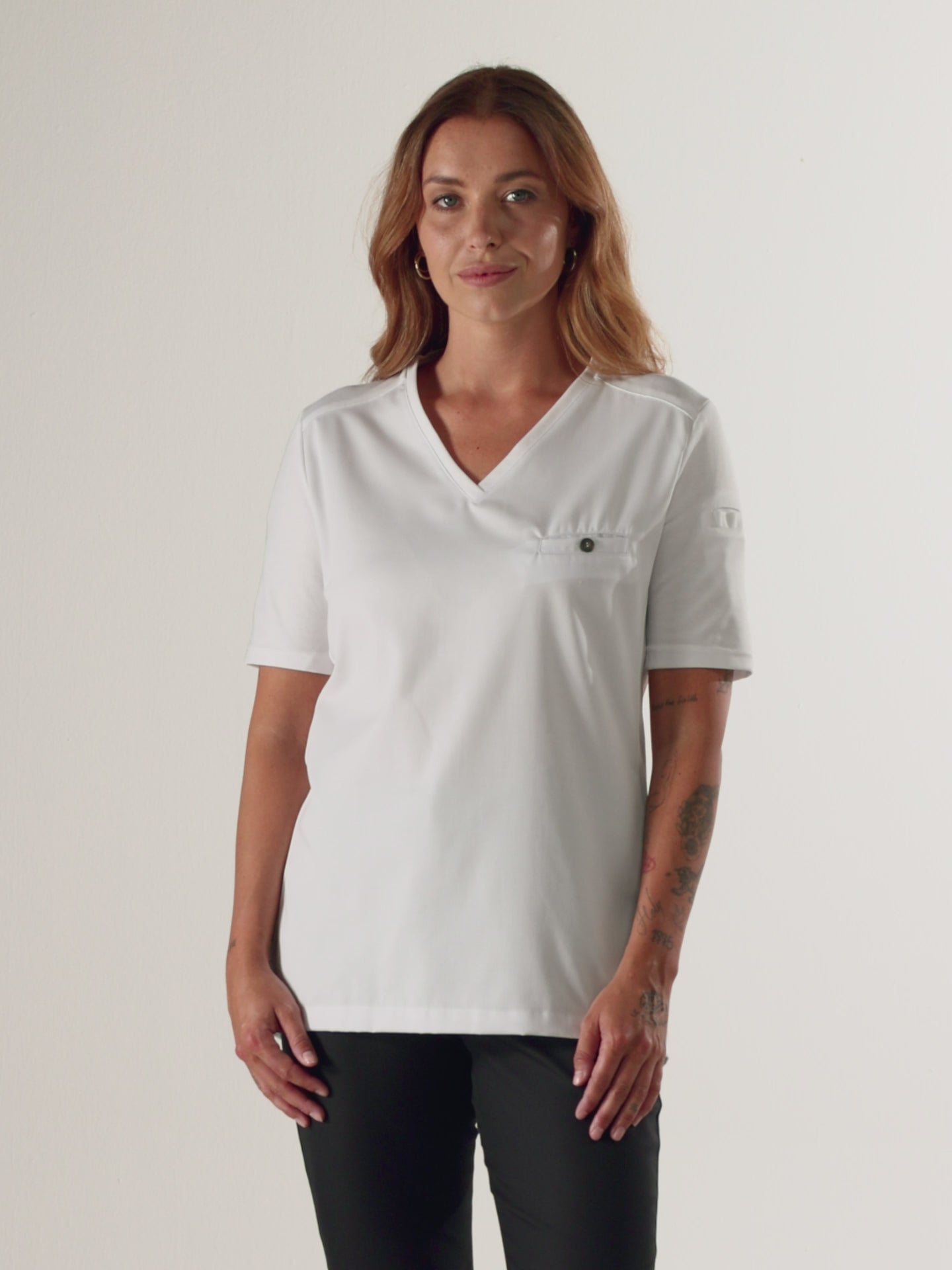 Una camiseta de corte ajustado con mangas cortas y excelente control de la humedad, hecha para mujeres tanto en la cocina como en el servicio.
