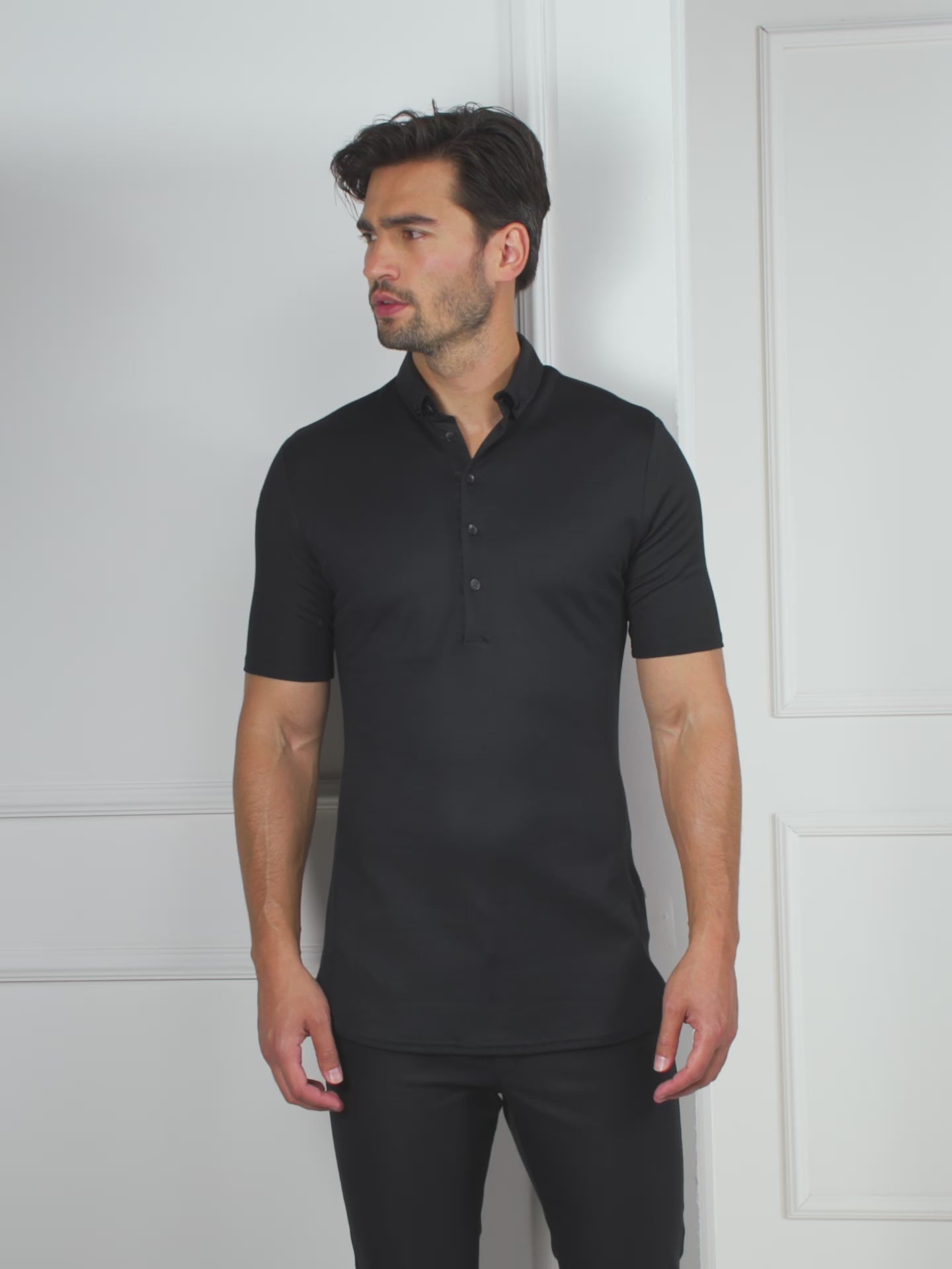 Diseño contemporáneo con un ajuste ceñido, material de punto ligero y cuello con botones de tela tejida. Ideal para profesionales que desean mantenerse cómodos durante todo el día.
