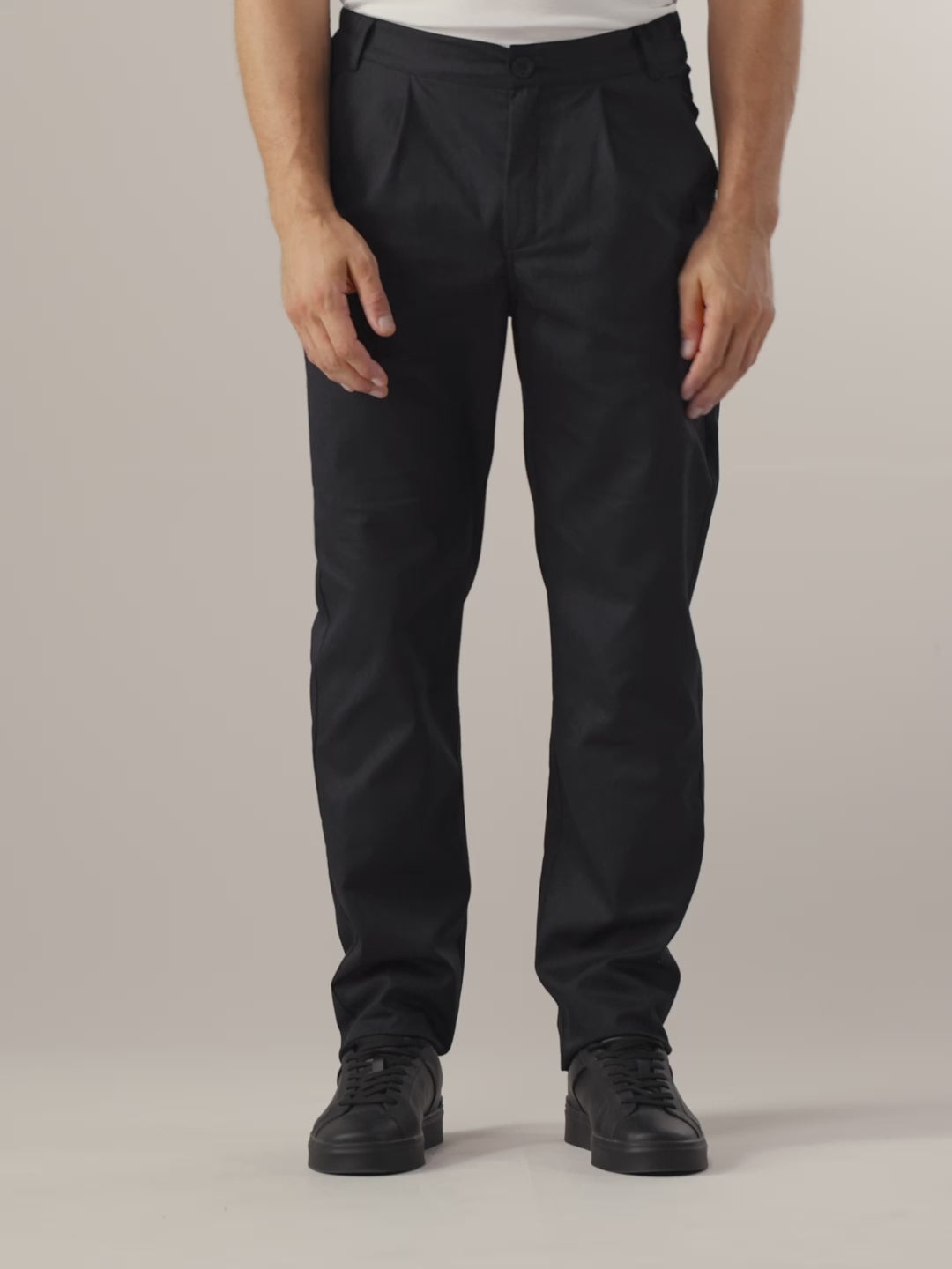 Estos pantalones cuentan con un cierre de cremallera y botón en la parte delantera y un bolsillo trasero. La tela liviana garantiza la máxima comodidad de uso y hace que este pantalón sea ideal para el equipo de cocina.